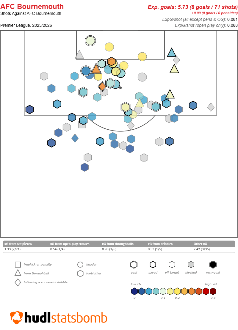 They’ve been mildly unlucky, conceding 8 goals from just 5.73 xG.