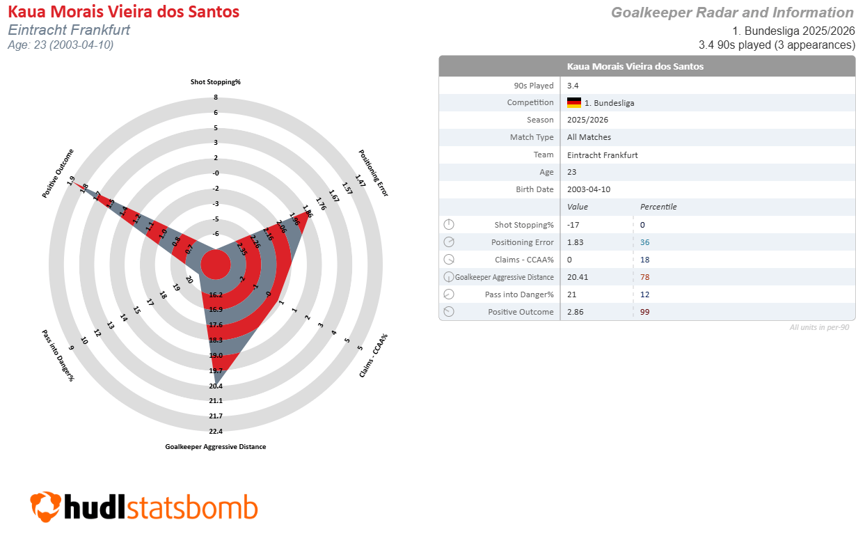 Please enjoy the radar of goalkeeper Kauã Santos, who has been benched and is unlikely to get his job back. If you’re wondering, a -17 shot stopping rating is, indeed, very bad.