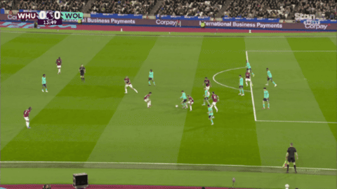 What’s been interesting with Fernandes this season is his usage. With Southampton, he played higher up the pitch as an all-action #8/10 hybrid. In comparison, he’s shifted more often into deeper areas to try and get him on the ball. It’s not surprising given how PL football is being played today. Often, you’ll see him retreat to the backline and form a situational back three. This helps platform his ability to spray long passes into the final third. He’s inside the top 20 for accurate long balls per 90 at just over a 63% success rate. The switches of play tend to have good weight to them, and he can be aggressive at trying to spray passes towards teammates on the flank to quicken transitions, which is key to how West Ham want to play.