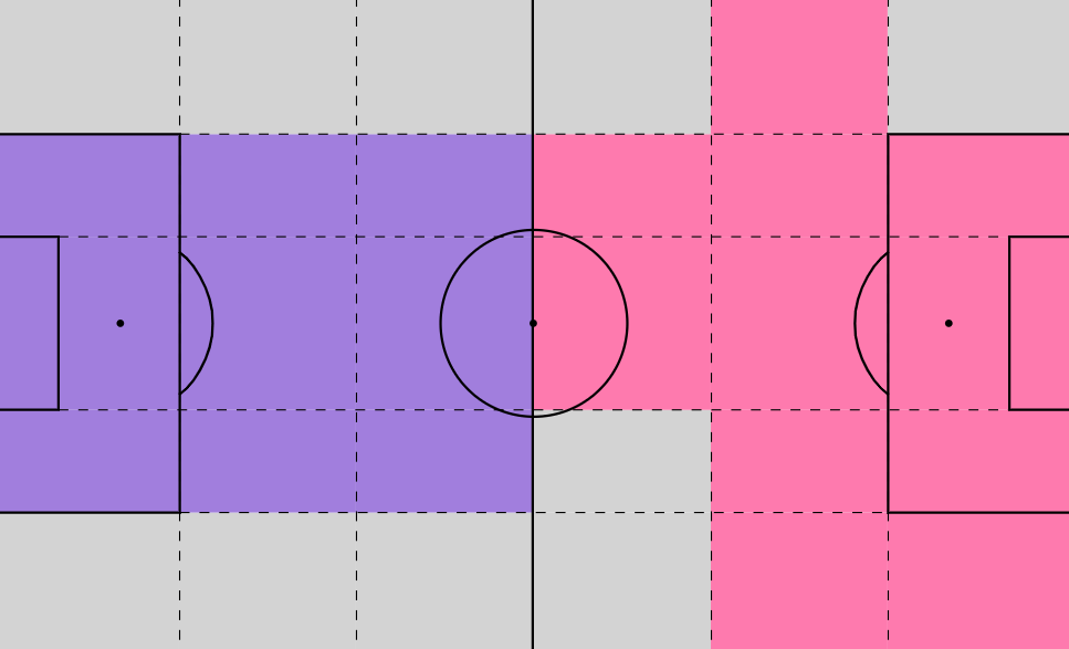 Such impressive output is the byproduct of Strasbourg’s interesting attacking structure. They’ve been able to toggle between ceding possession vs the bigger sides in Ligue 1, compared to trying to be proactive against the rest of the division. In matches where they have the talent advantage, they try to bait opponents out of their defensive shell with deep circulation across the backline rather than have high territorial dominance higher up the pitch. This was mentioned by Alex Barker from The Athletic, and Strasbourg’s zones of control map from Opta Analyst is a good illustration of their funky gameplan.
