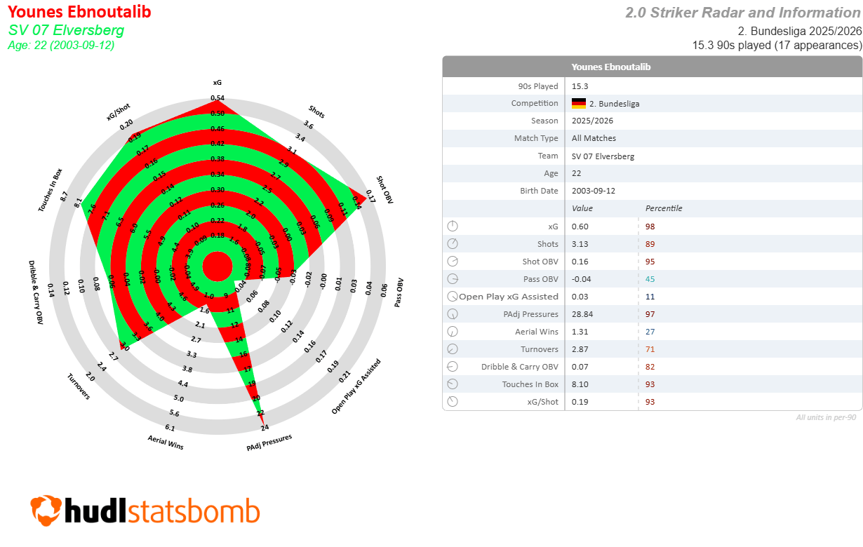 Speaking of new Bundesliga strikers, Younes Ebnoutalib’s move to Eintracht Frankfurt got a lot of German football heads excited. You may join them by looking at his radar from the first half of the season: