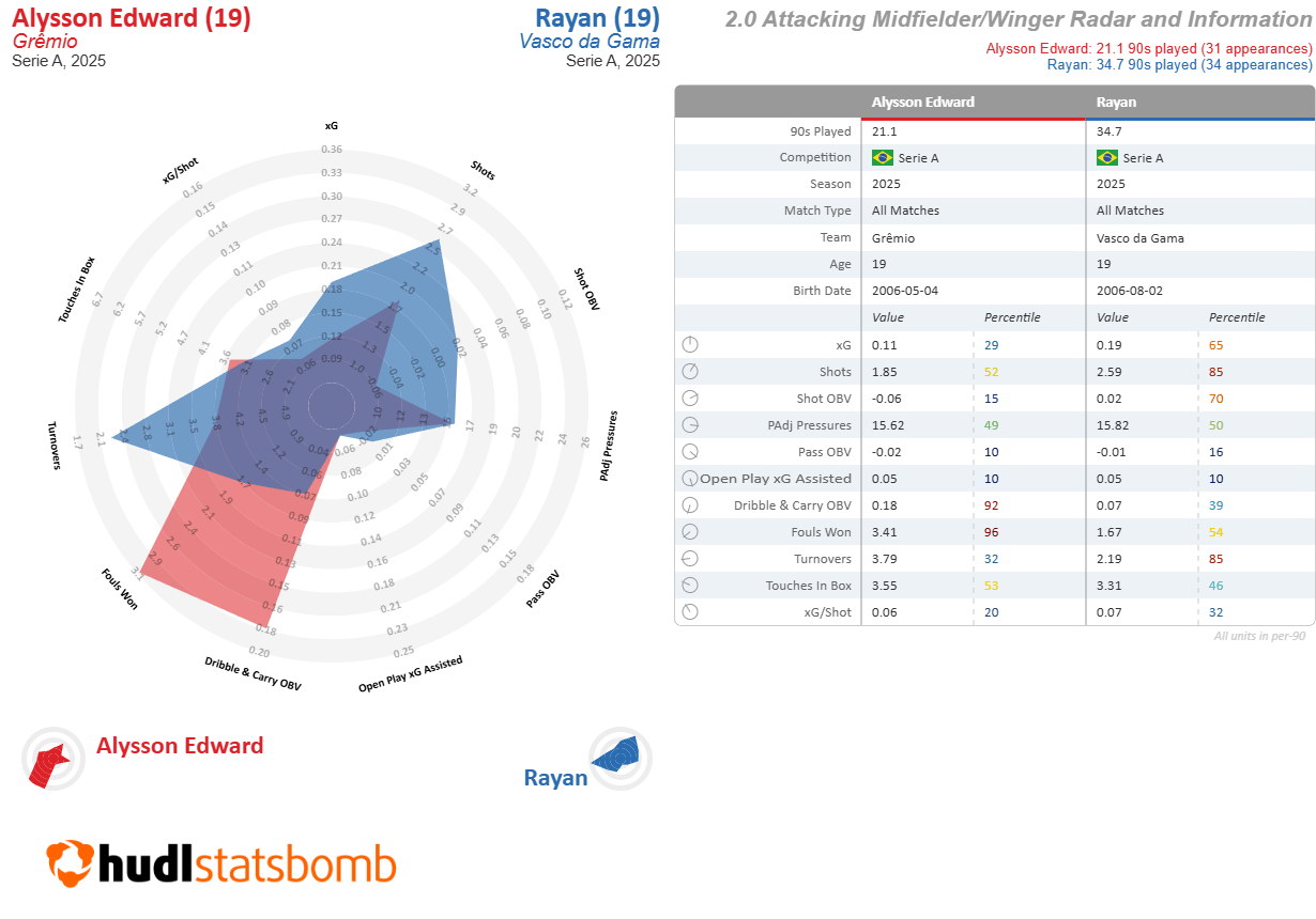 If you watch both of them, the most striking difference is mostly in physique. Rayan already looks the part of a Premier League footballer, while Alysson needs to be introduced to steak and the weight room.
