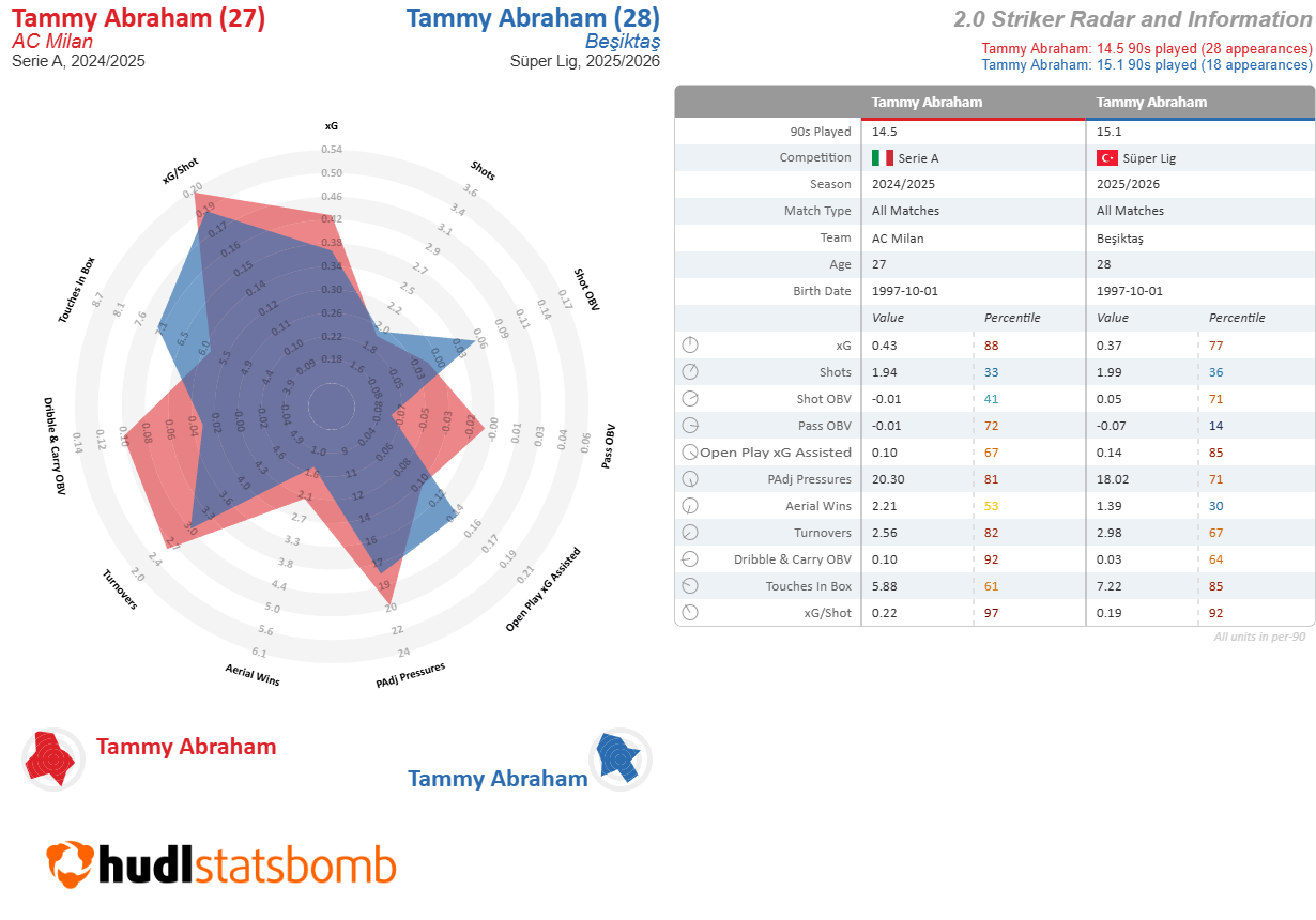 Injuries and poor finishing have plagued Abraham over the course of his career. But when he’s fit, he presses, shows good dribbling ability, and gets into excellent shooting positions.