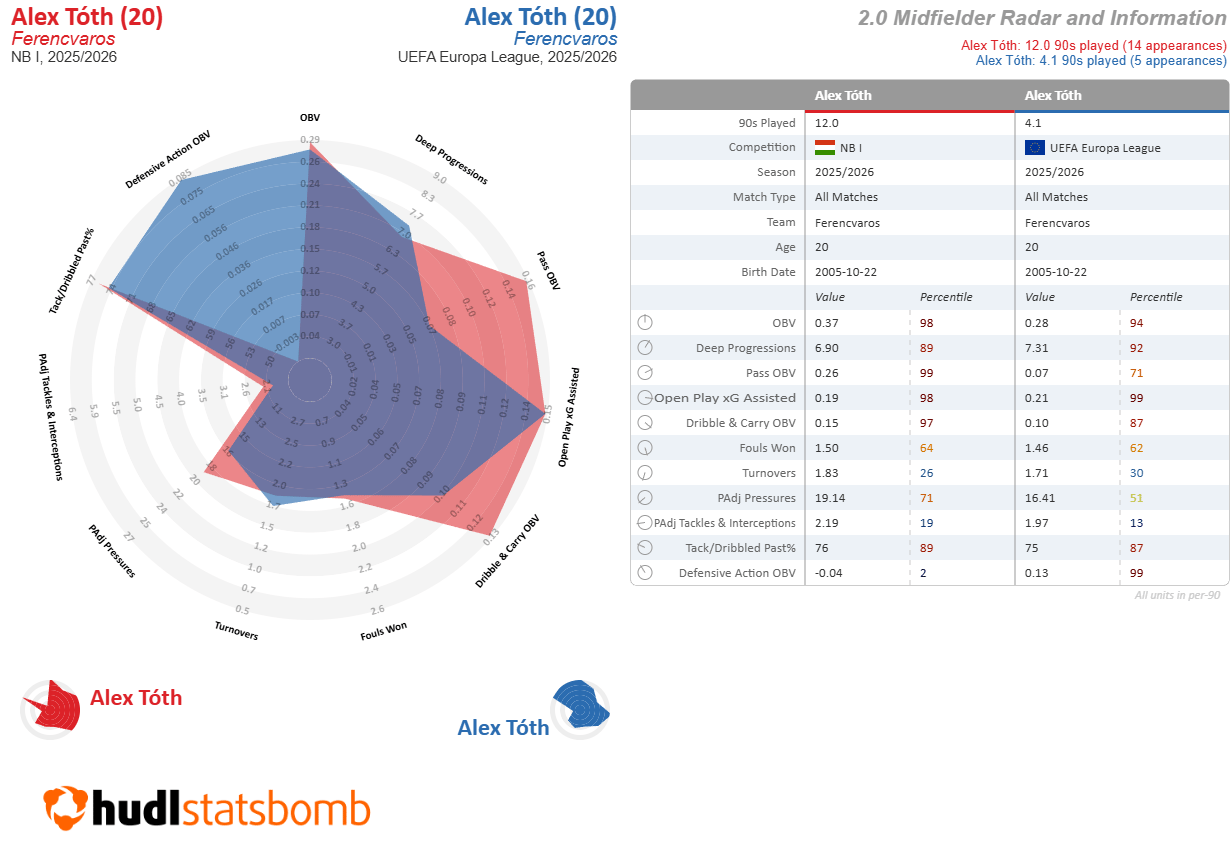 Enter Alex Toth, who we’ve previously mentioned in these pages as one of the most interesting performers in the Europa League this year. Bro can pass the ball.