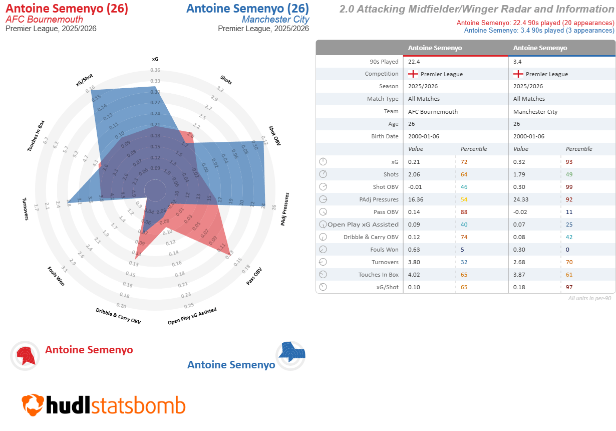 Hey, Semenyo’s already played enough for Manchester City that we can do a radar comp.