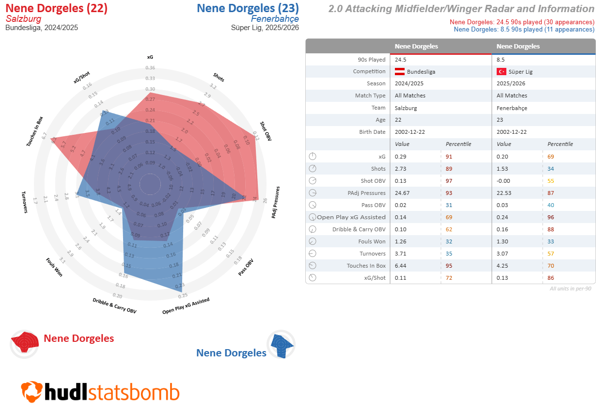 He has played all across midfield and occasionally even started on the wing for a very interesting Eintracht Frankfurt side, who give him full license to roam around and link up with his teammates. The result is this unique statistical profile: