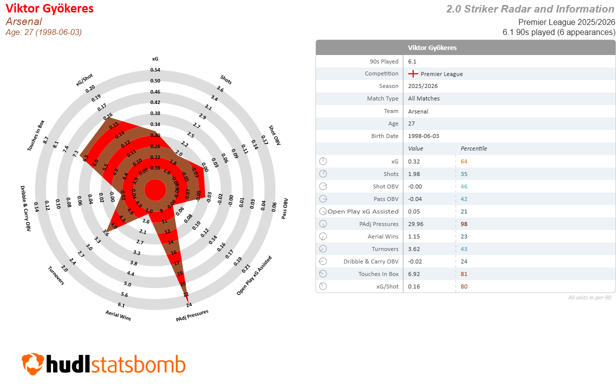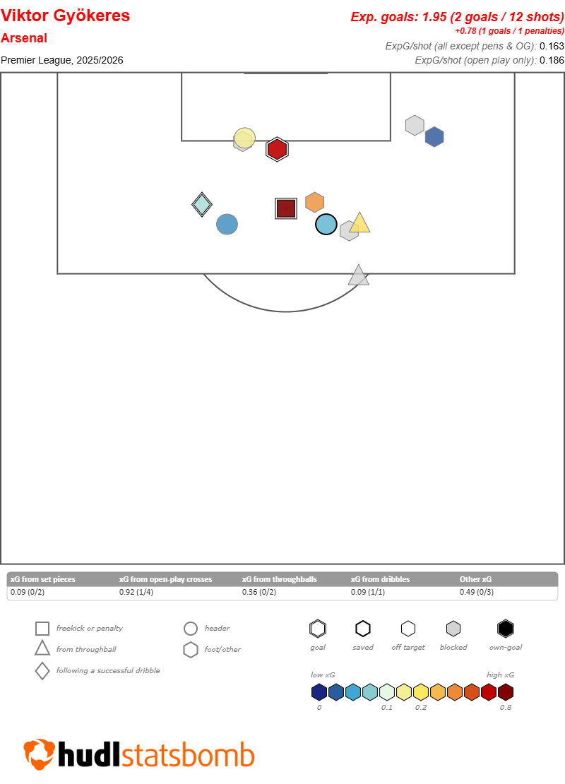 Gyökeres is also performing right at his xG. He looks like a totally fine, but not elite striker at the moment.