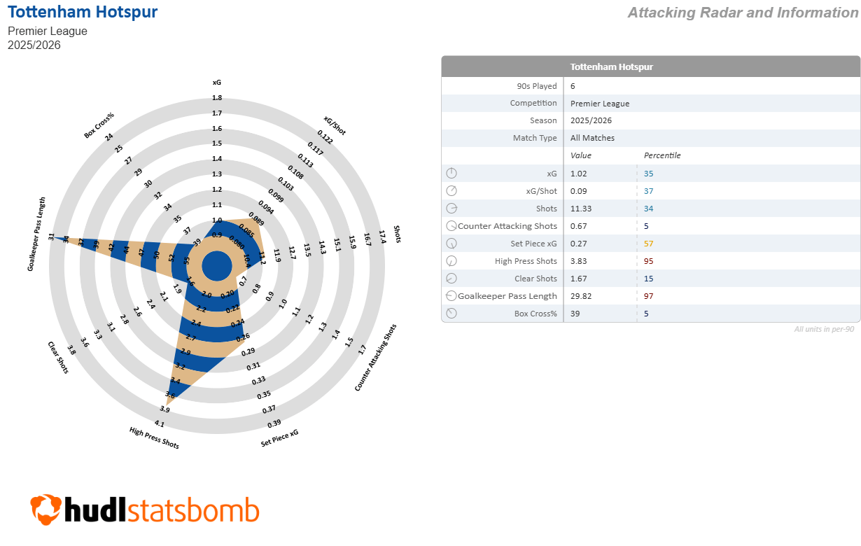 All of that is the main reason why, despite sitting 4th in the Premier League table, Tottenham’s attacking numbers look like this: