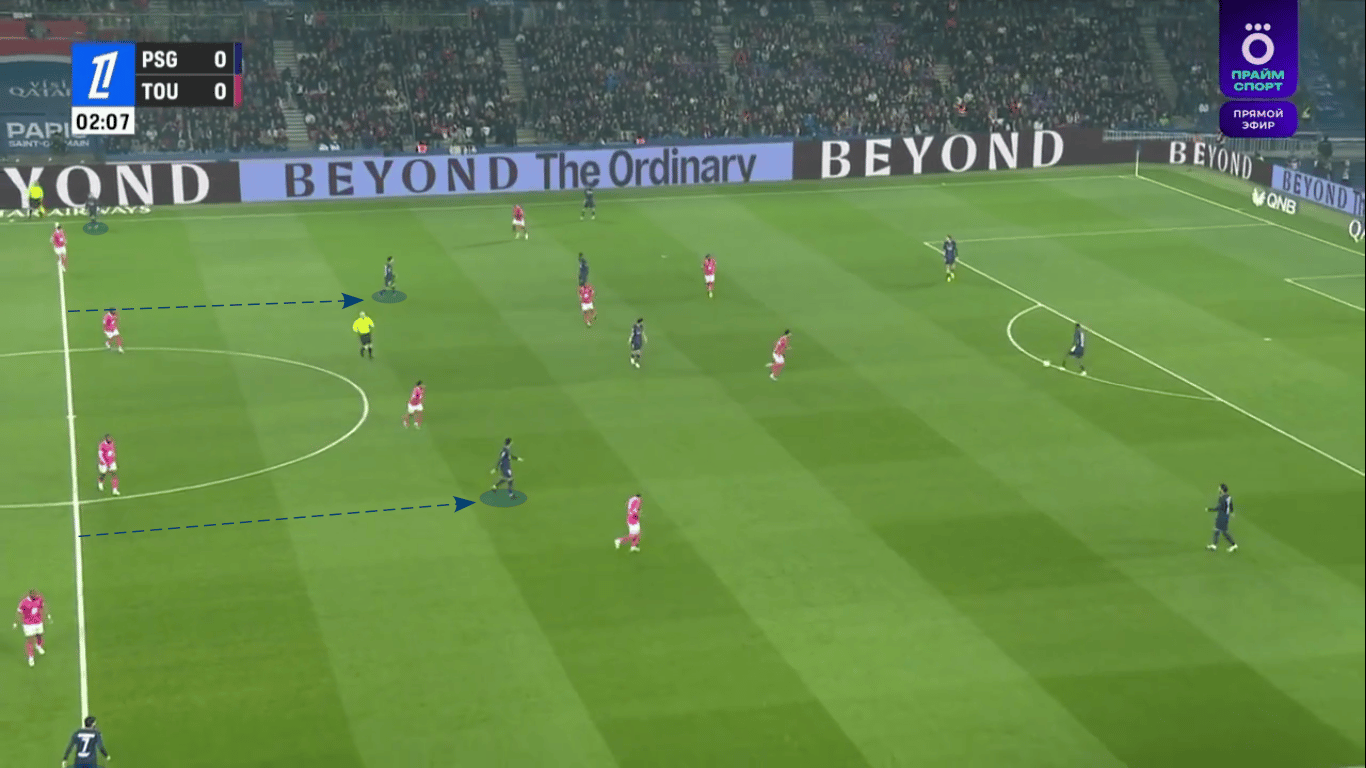 The Parisians might even look to exploit this further if they replicate what they did last weekend. While Luis Enrique’s side have been operating without a true number nine for over a year, they typically still use someone like Ousmane Dembélé to occupy the last line in the build-up. Against Toulouse, though, both of their central attackers dropped well back, leaving the wingers to stay high and wide. The likes of Khvicha Kvaratskhelia, Bradley Barcola and Desiré Doué could also find some joy against relatively defensively weaker Liverpool full-backs through such an approach.
