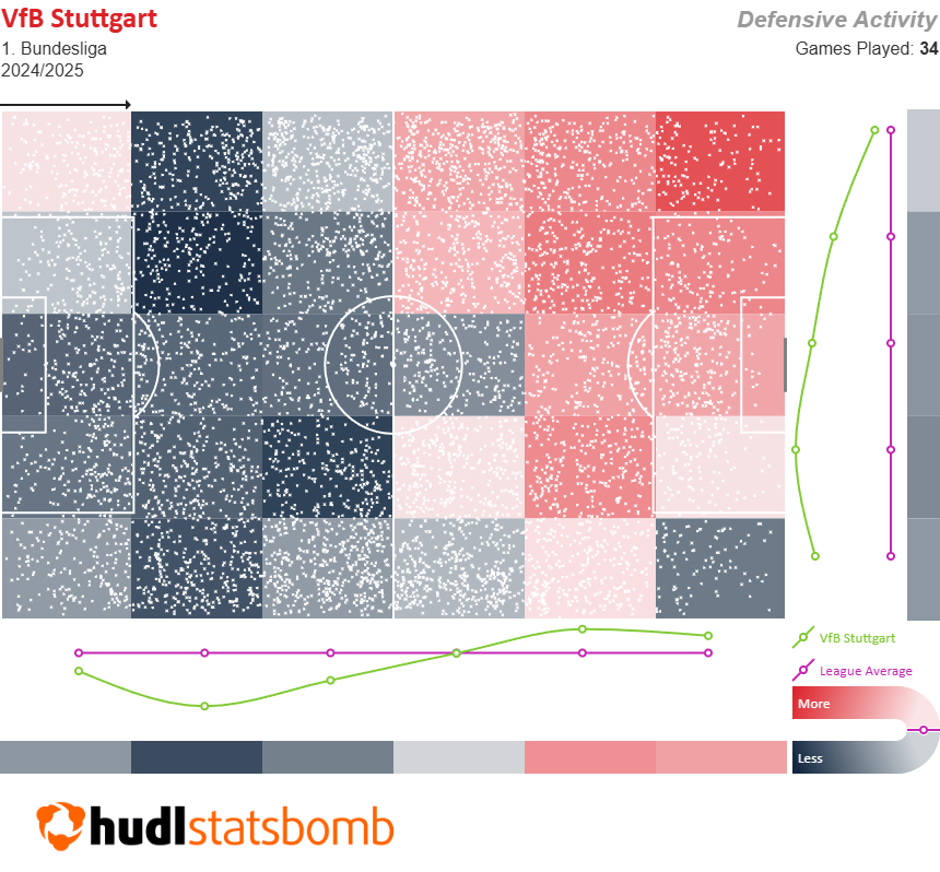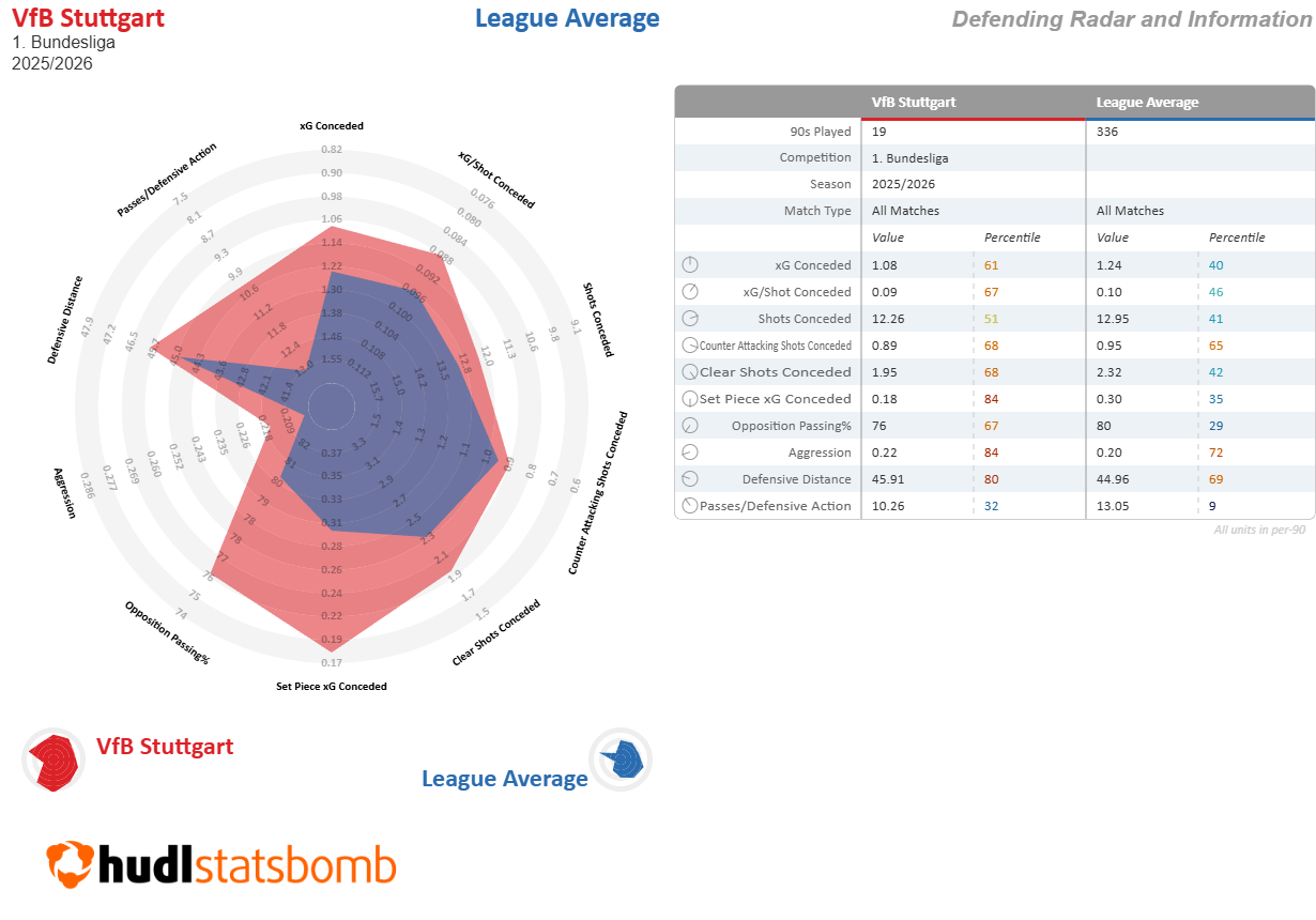 The stats seem to suggest that Hoeneß’s side have made bigger improvements defensively, as they are above average in every metric. Interestingly, though, they haven’t shown many new tactical ideas in this regard. Instead, they are simply executing much better so far.
