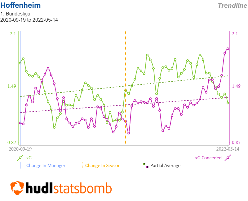Both of these teams enjoyed success by somewhat going against the Bundesliga’s traditional more end-to-end and transition-based meta, but sustaining it was a different challenge. Certainly for Stuttgart, it seemed that opponents were better-prepared to face them the following season as they avoided getting press-baited so easily and generally adopted more compact approaches or had better plans to limit their build-up. As a result, Hoeneß’s side struggled to create as many chances and generally had a tougher time going forward.